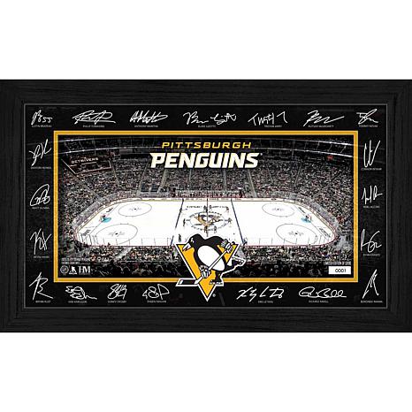 Celebrate your team spirit with this stunning framed display featuring facsimile signatures of most Penguins players around a detailed image of their home rink. Each piece is hand-numbered and protected under plexiglass, making it a prized collectible for any fan. Limited to 5,000 pieces, it comes with a certificate of authenticity and is officially licensed by the NHL and NHLPA.