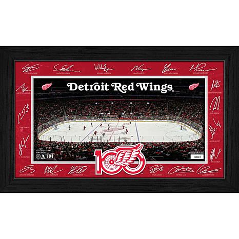 Celebrate your passion for hockey with this stunning framed display featuring facsimile signatures of most Red Wings players surrounding a detailed image of their home rink. Each piece is hand-numbered and protected under plexiglass, making it a prized addition to any fan’s collection. Limited to 5,000 pieces, it’s officially licensed by the NHL and NHLPA, crafted with pride in the USA.