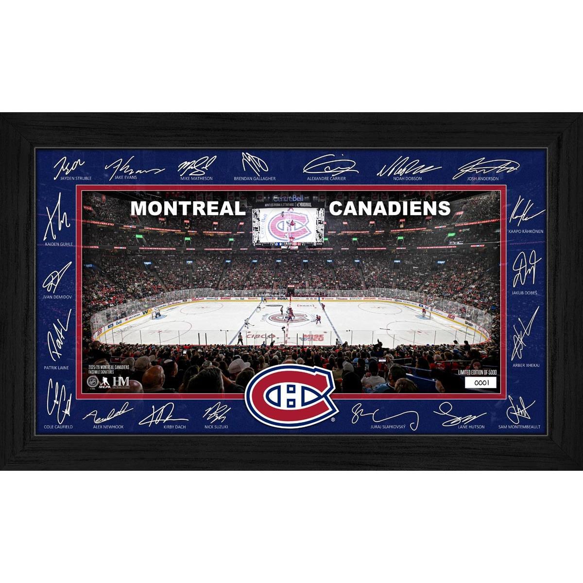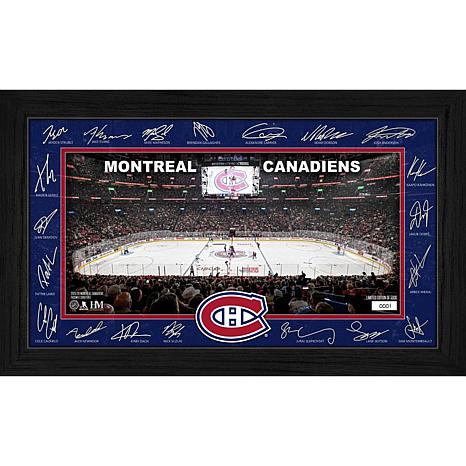 Celebrate your love for the Canadiens with this stunning framed display featuring facsimile signatures of most players surrounding a detailed image of their home rink. Each piece is individually hand-numbered and protected under plexiglass, making it a prized addition to any fan’s collection. Limited to 5,000 pieces, it comes with a certificate of authenticity and is officially licensed by the NHL and NHLPA.