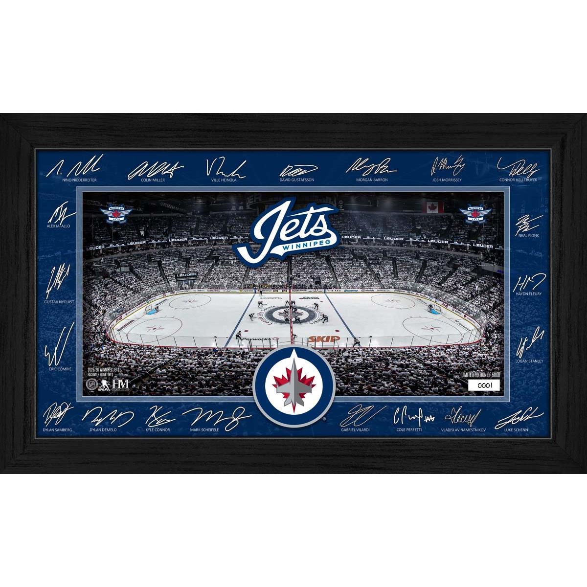 Celebrate your favorite team with this stunning framed display featuring facsimile signatures of most Jets players around a detailed image of their home rink. Limited to 5,000 pieces, each collectible is hand-numbered and protected under plexiglass for lasting beauty. It’s a perfect addition to any fan’s collection and comes with a certificate of authenticity.