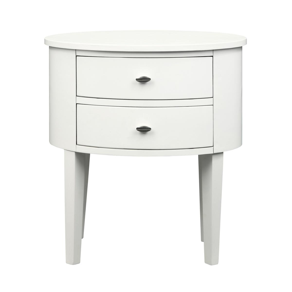 Looking to jazz up your home decor? Accent with a contemporary touch with this stylish table. It features a clean aesthetic with its oval body and tapered legs. Two convenient drawers with accenting knob hardware provide the perfect storage space for items close at hand.