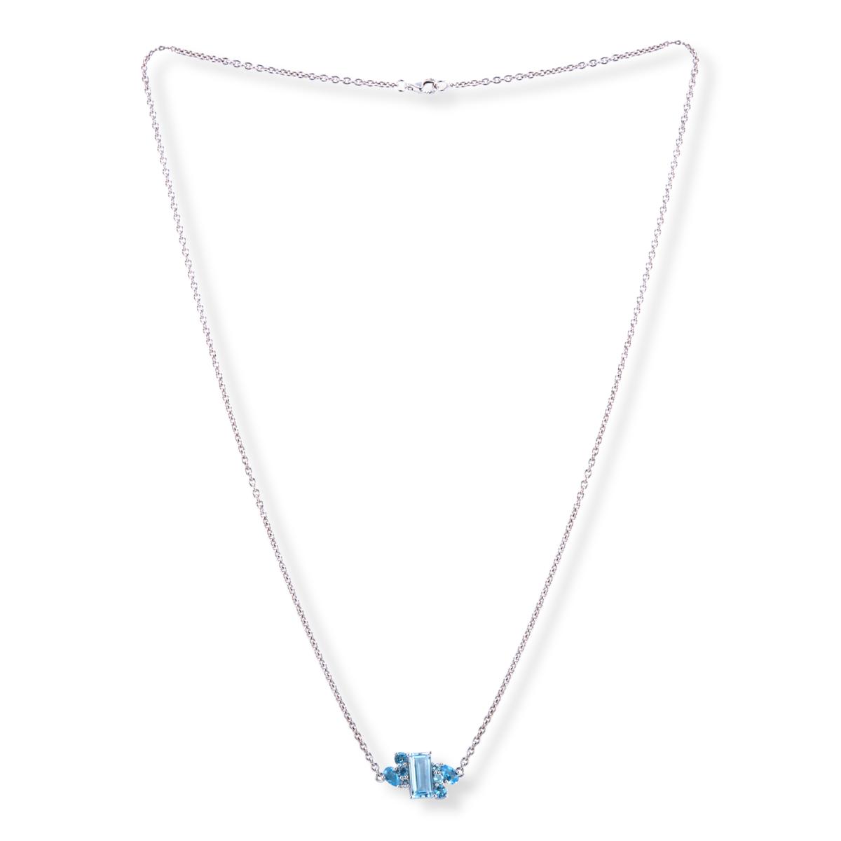 Blue - Blue topaz stones; white rhodium-plating