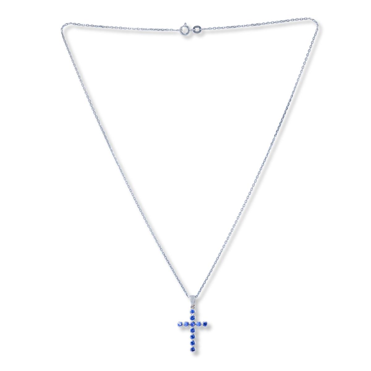 House of Ellure Sterling Silver Sapphire Cross Pendant with 18" Chain