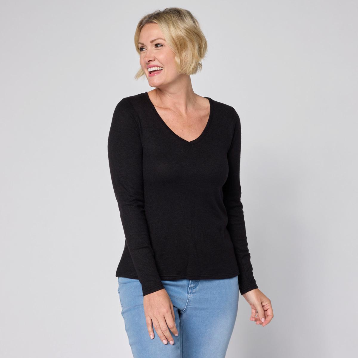 Whether paired with sweats, skinny jeans or PJ bottoms, this long-sleeve V-neck tee adds luxe vibes to your look.