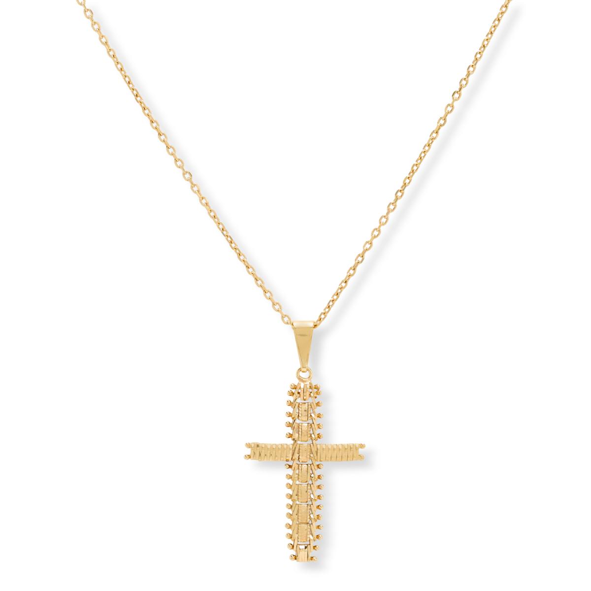 This elegant cross pendant necklace features a polished, diamond-cut, and satin finish that catches the light beautifully. The adjustable cable chain offers versatile styling options, making it perfect for everyday wear or special occasions. Crafted with care, this piece adds a touch of timeless sophistication to any outfit.