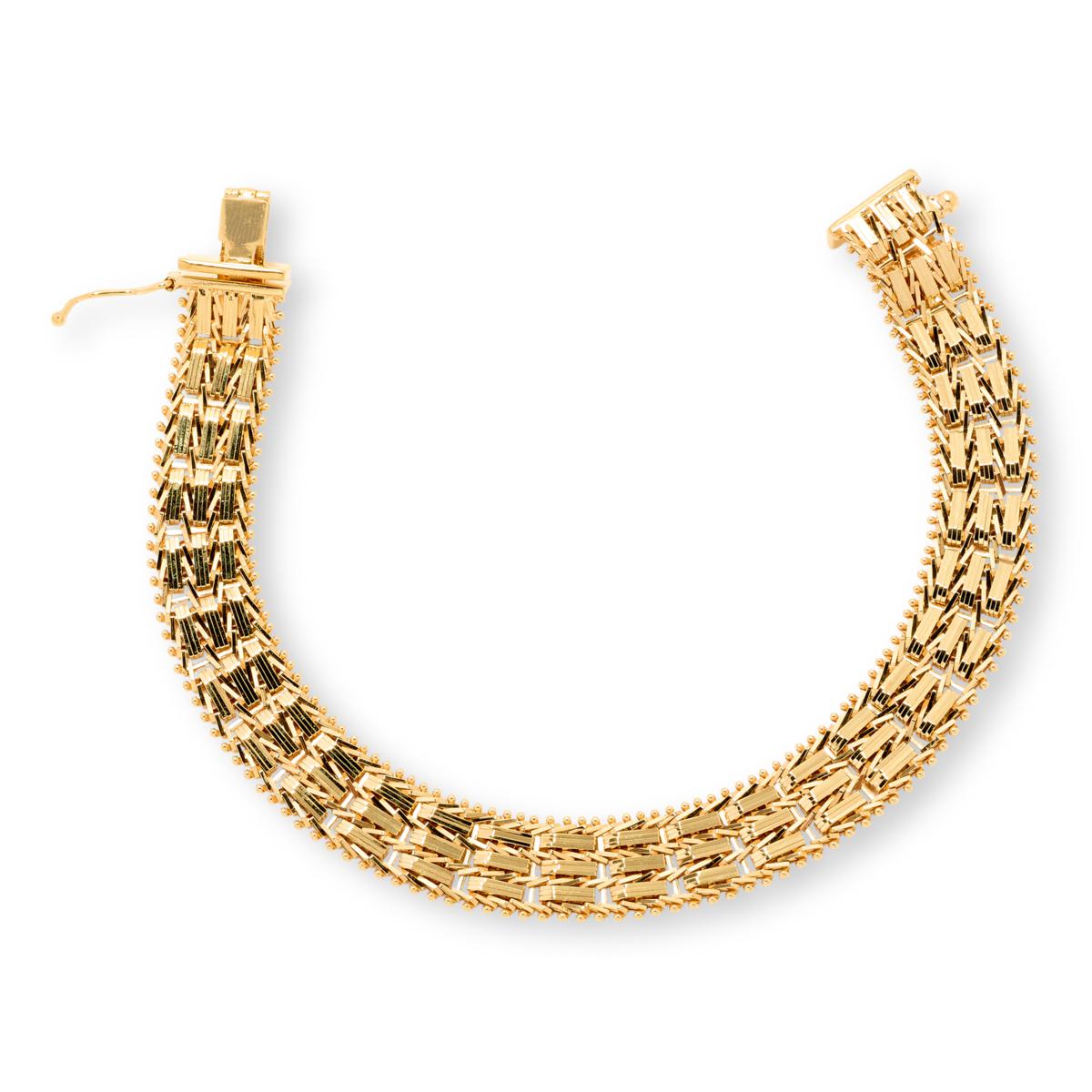 Brighten your look with this sleek bracelet featuring polished, diamond-cut links that catch the light beautifully. Its floating pin assembly creates a fluid, luxurious feel that moves with you, perfect for adding a touch of elegance to any outfit. The secure hidden box clasp ensures a continuous, high-end look from every angle.