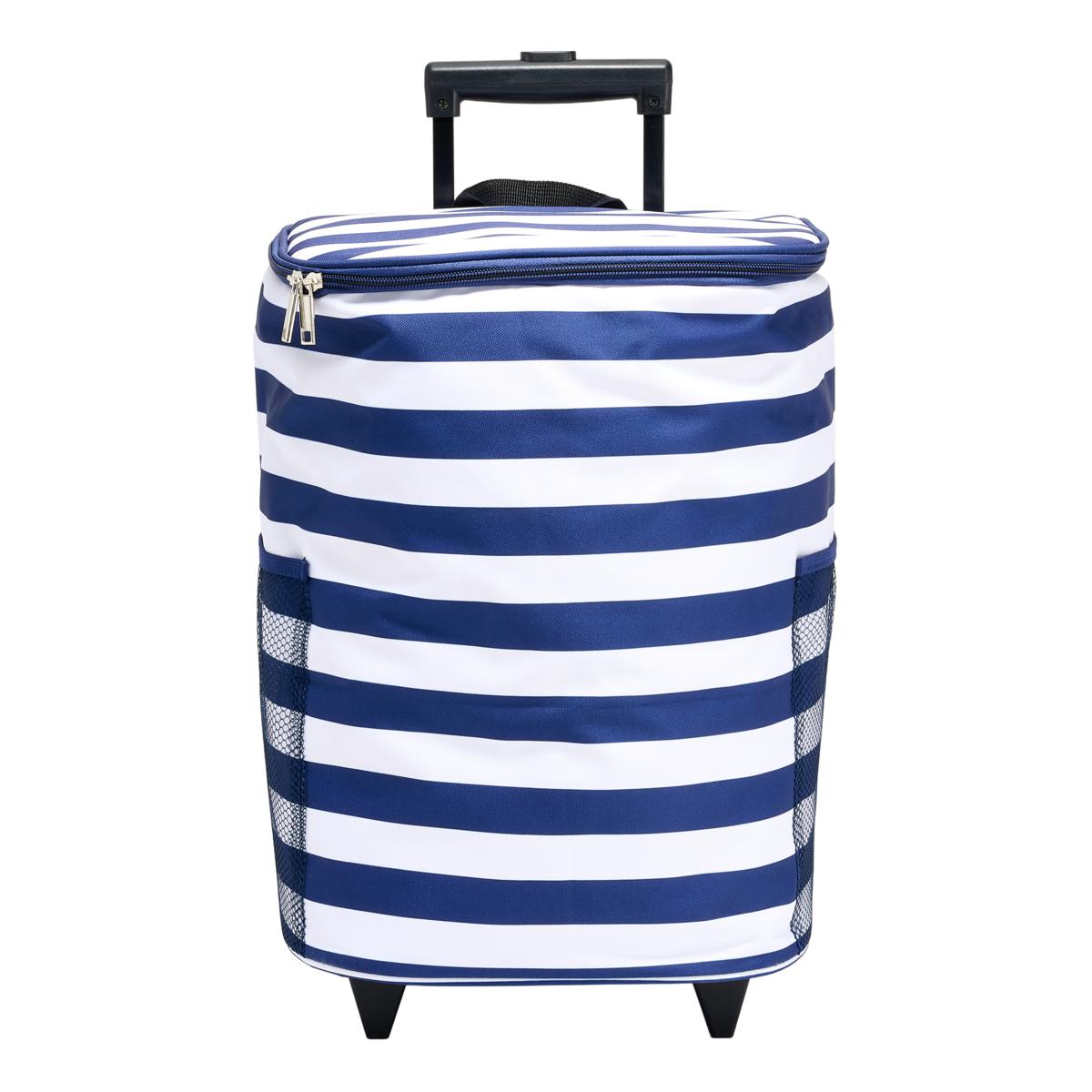 Meet your new best friend for transporting foods, beverages and groceries. With a generous 8-gallon capacity, this cooler can fit about 24 cans of soda, and has a weight capacity of up to 33 lbs. Take it to the park, the beach, the game, to a get-together or to the store. It features easy-to-roll wheels and a retractable handle. And it's leak-resistant, made to keep everything cool with a zippered top. Plus, it includes mesh side pockets to keep personal items.