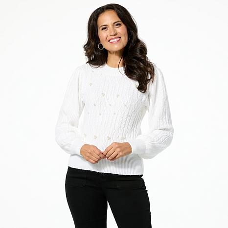 Jaclyn Smith Puff-Sleeve Cable Knit Sweater
