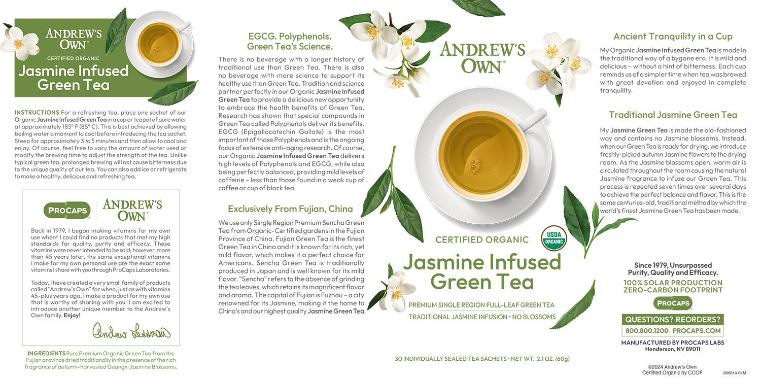 Jasmine Infused Organic Green Tea - 30 Sachets