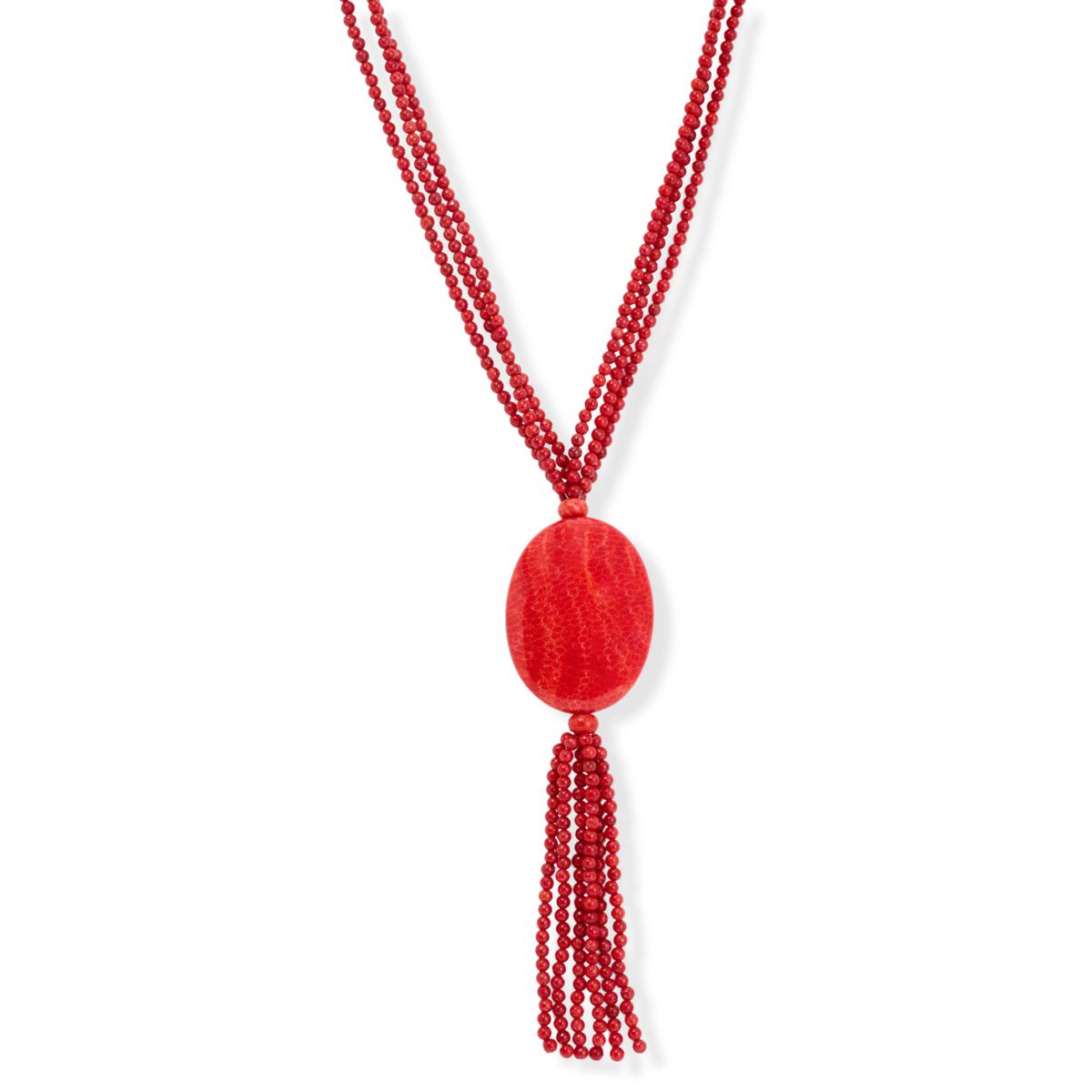 Jay King 3-Strand Red Coral Tassel Drop Necklace