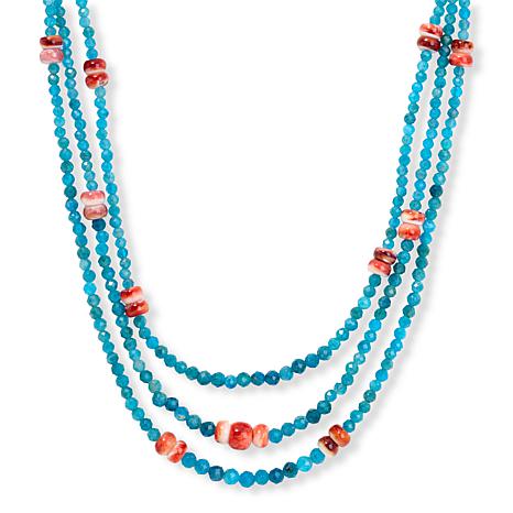 Jay King Apatite and Spiny Oyster Shell 3-Stand Necklace
