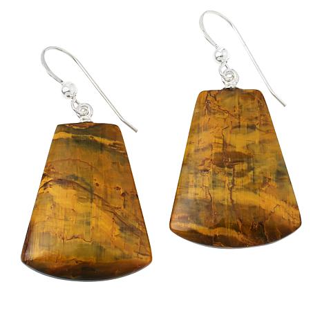 - Earrings have geometric-shaped drops of multicolor, "Golden Quartzite" stones