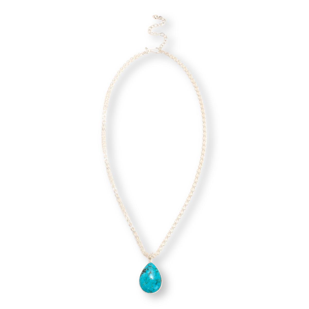 - Sterling silver pendant has bezel-set, pear-shaped blue-green turquoise stone