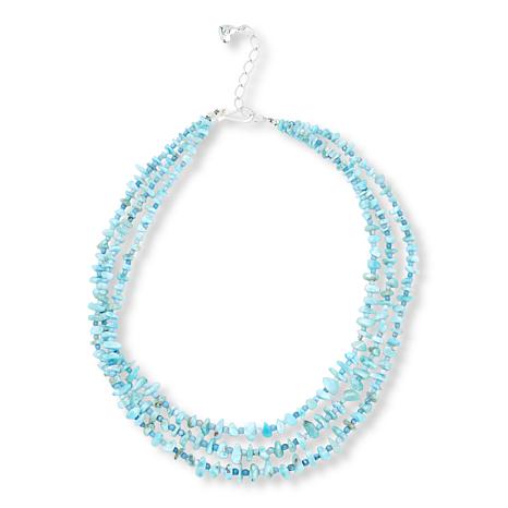 The lovely, layered silhouette of this chic 3-strand larimar and blue opal necklace is sure to elevate the look of any ensemble. From Jay King.