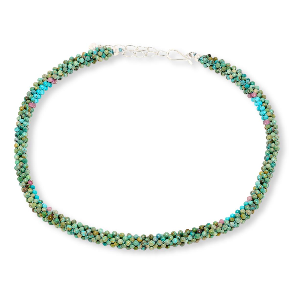 Jay King Turquoise and Pink Tourmaline Woven Necklace