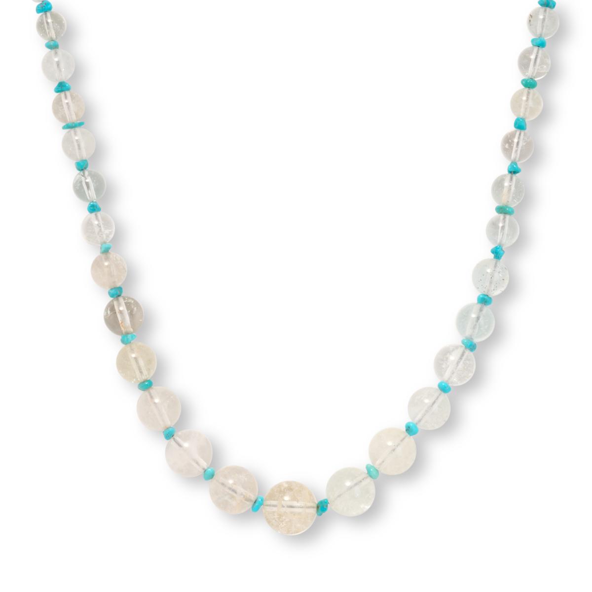 This handcrafted bead necklace brings together the natural sparkle of Nigerian white topaz with the vibrant hues of Chilean royal blue turquoise for a truly unique look. Perfect for adding a pop of color and a touch of elegance to any outfit, it’s a versatile piece you’ll reach for again and again.