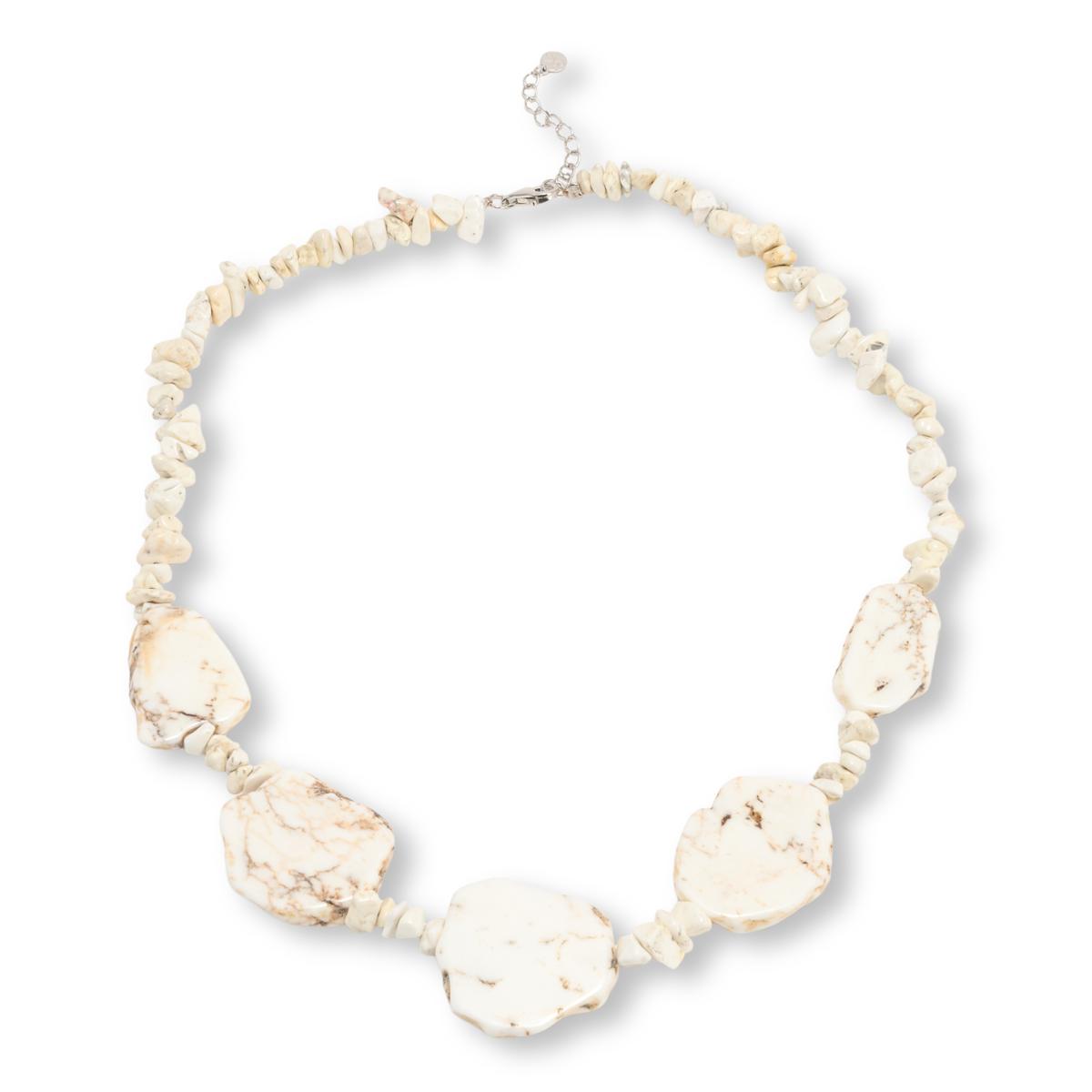 Earthy howlite chips and stations form this single-strand, bib-inspired Cleopatra necklace from Kalifano. Discover an elegantly rustic statement piece for your favorite casual looks.