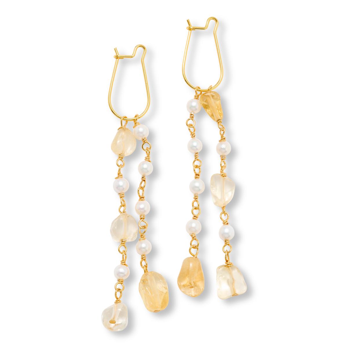 - Two asymmetrical chain-link strands fashioned with alternating gem nuggets and round cultured pearls