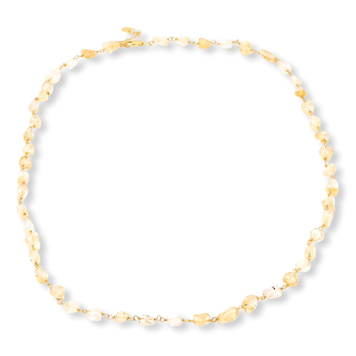 - Gold-plated sterling silver necklace features gemstone nuggets
