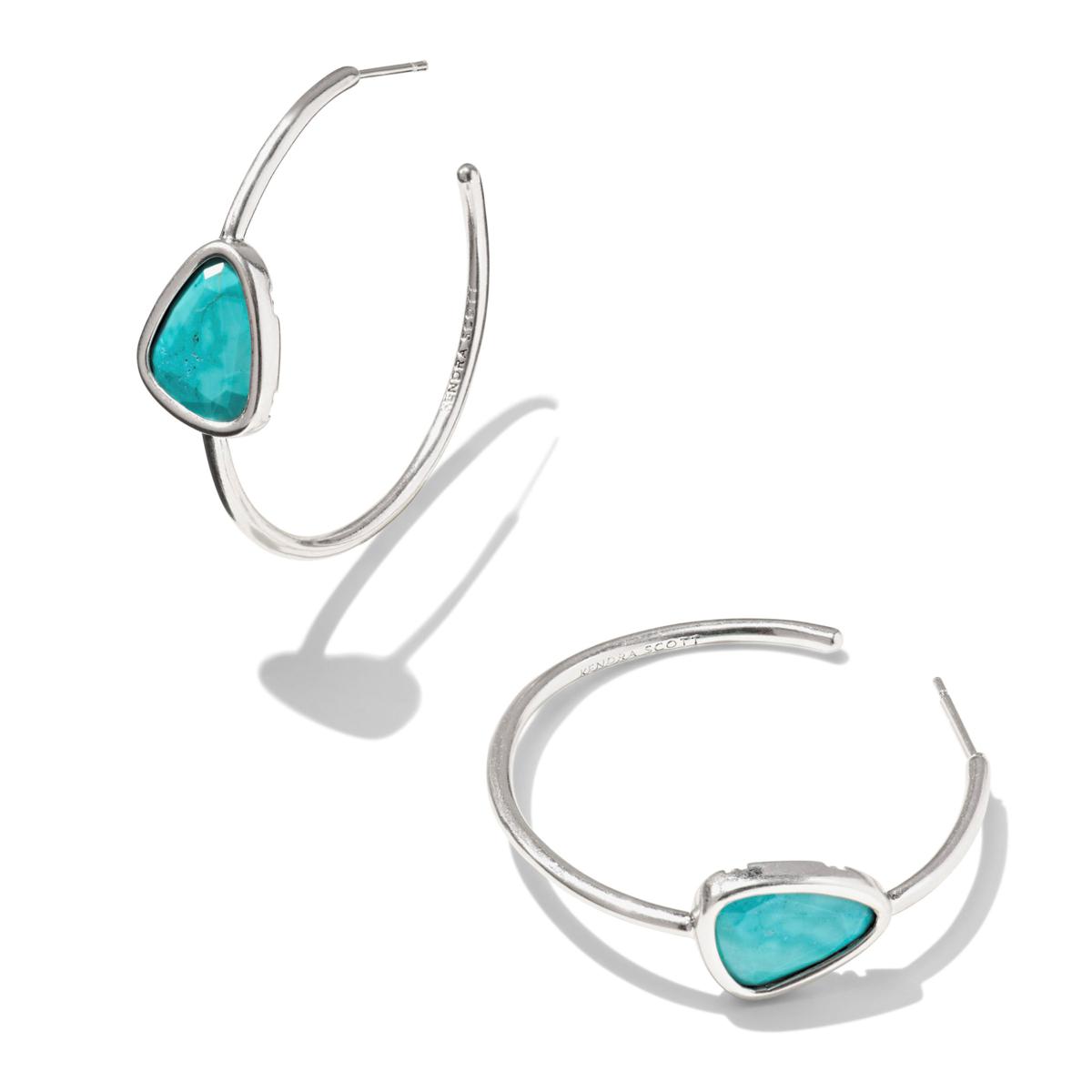- Turquoise-Color Magnesite Earrings: Rhodium-plated silvertone metal