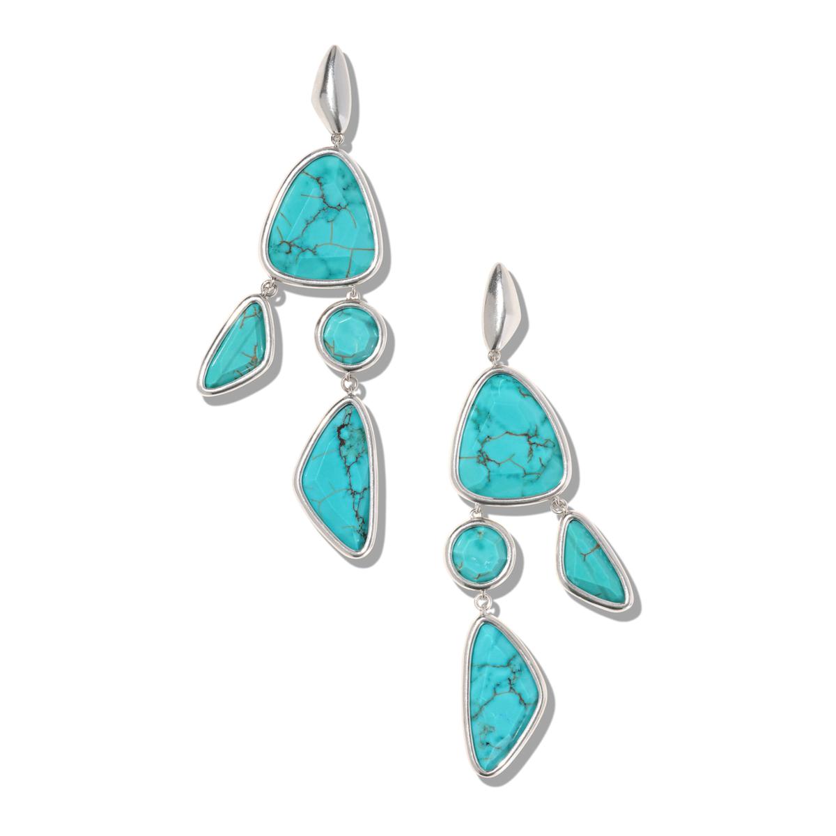 - Turquoise-Color Magnesite Earrings: Silvertone metal