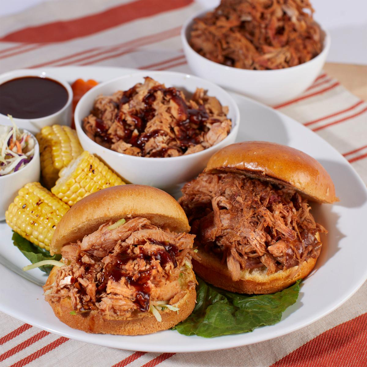 Ingredients: Pork Shoulder, Tangy BBQ Sauce (Water, tomato paste, high fructose corn syrup, molasses, distilled vinegar, brown sugar, salt, Worcestershire sauce (distilled vinegar, molasses, corn syrup, water, salt, caramel color, garlic powder, sugar, spices, tamarind, natural flavors), cayenne peppers, natural smoke flavor, dehydrated onions, soybean oil, dextrose, dehydrated garlic, spice and spice extractives, xanthan gum, sodium benzoate (preservative), guar gum, ascorbic acid).