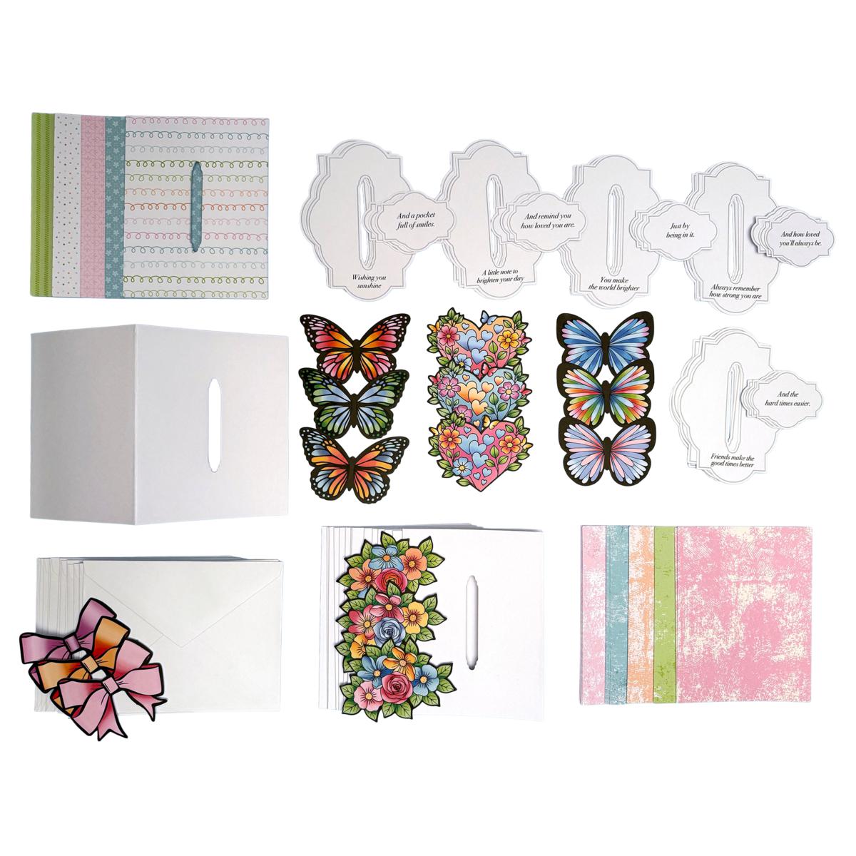Delight in the joy of creating specialty cards with this kit of beautifully coordinated elements designed for all occasions. The kit includes materials to craft 15 unique cards and features a delightful mix of inspiring patterns, colors and styles.