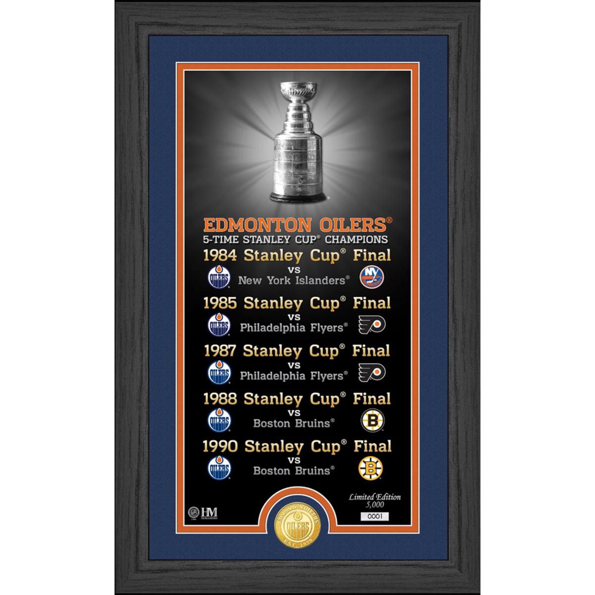 Celebrate the Edmonton Oilers’ five Stanley Cup championships with this stunning framed tribute. Featuring a custom, hand-numbered commemorative photo and a solid bronze team coin, it’s a must-have for any fan’s collection. Perfect for display in your home or office, this limited edition piece brings the excitement of hockey history right to your walls.