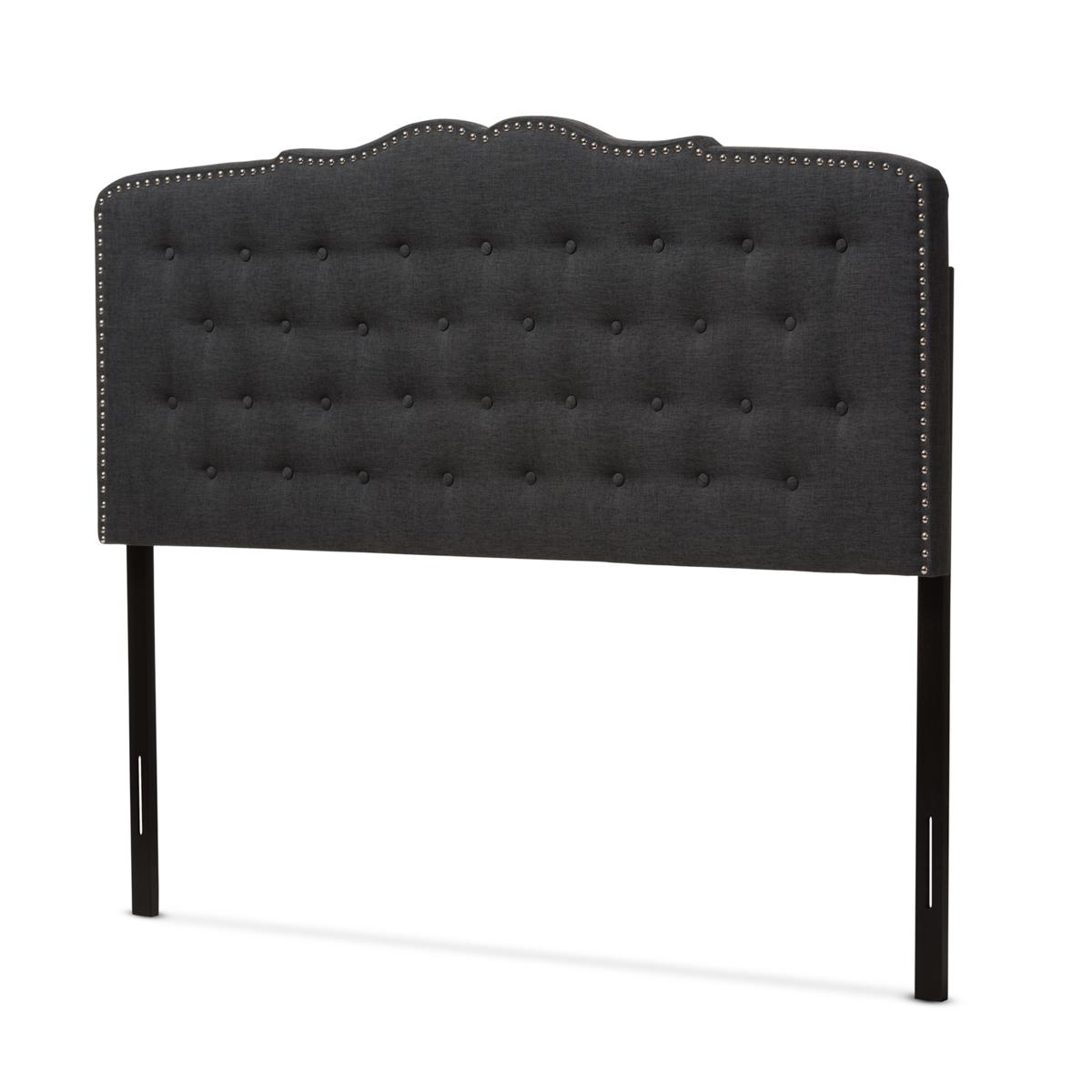 Classic finishes and an elegant curved shape make the Lucy fabric upholstered headboard the perfect centerpiece in your guest room or bedroom. Constructed of solid rubberwood frame, the Lucy full size headboard is upholstered in polyester fabric that is durable. Featuring curved shape with button-tufted design for a classic look, the Lucy is glamorously trimmed with silver nail heads for a more sophisticated look. The headboard is supported sturdily by solid wood posts with 5-adjustable pre-drilled holes attached to the headboard and 2-adjustable holes to configure the height of your bed frame. Traditional adjustable metal bed frame such as Leggett and Platt bed frame will work well with the headboard. Cushioned headboard offers softness and shape, providing a comfortable leaning space while you sit up. Made in Malaysia, the headboard requires assembly. Warranty: 30-Day Parts Warranty. Contact: Wenqi Gui | Wholesale Interiors / Baxton Studio | 991 Supreme Dr, Bensenville, IL 60106 | T:630-238-8877x233 F: 630-238-8470 | wgui@wholesale-interiors.com | www.wholesale-interiors.com