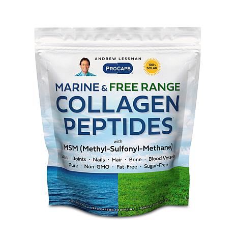 Andrew Lessman's Marine and Free Range Collagen Peptides with MSM provides a unique blend of highly bioavailable Collagen Peptides from both Marine and Free Range collagen sources. Both of these sources are specifically selected for their unique ability to deliver their combined benefits to the vital collagen structure of our Joints, Bones and Blood Vessels, as well as our Skin, Hair and Nails.
