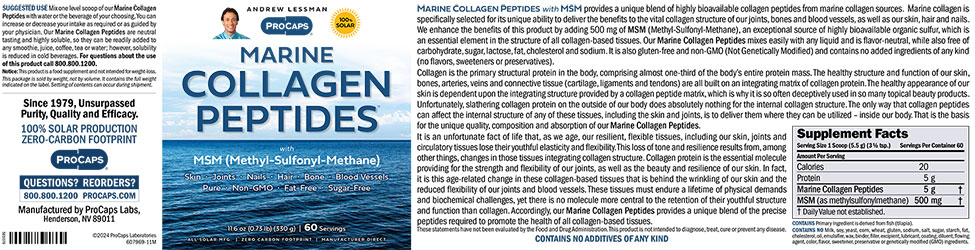 To further enhance and promote protein synthesis in these critical tissues, we also include 500 mg of Methyl-Sulfonyl-Methane (MSM), an exceptional source of highly bioavailable organic sulfur. Our Marine Collagen Peptides mixes easily with water and is flavor-neutral, while also free of carbohydrates, sugar, lactose, fat, cholesterol and sodium. It is non-GMO (not Genetically Modified) and contains no added flavors, sweeteners or preservatives.