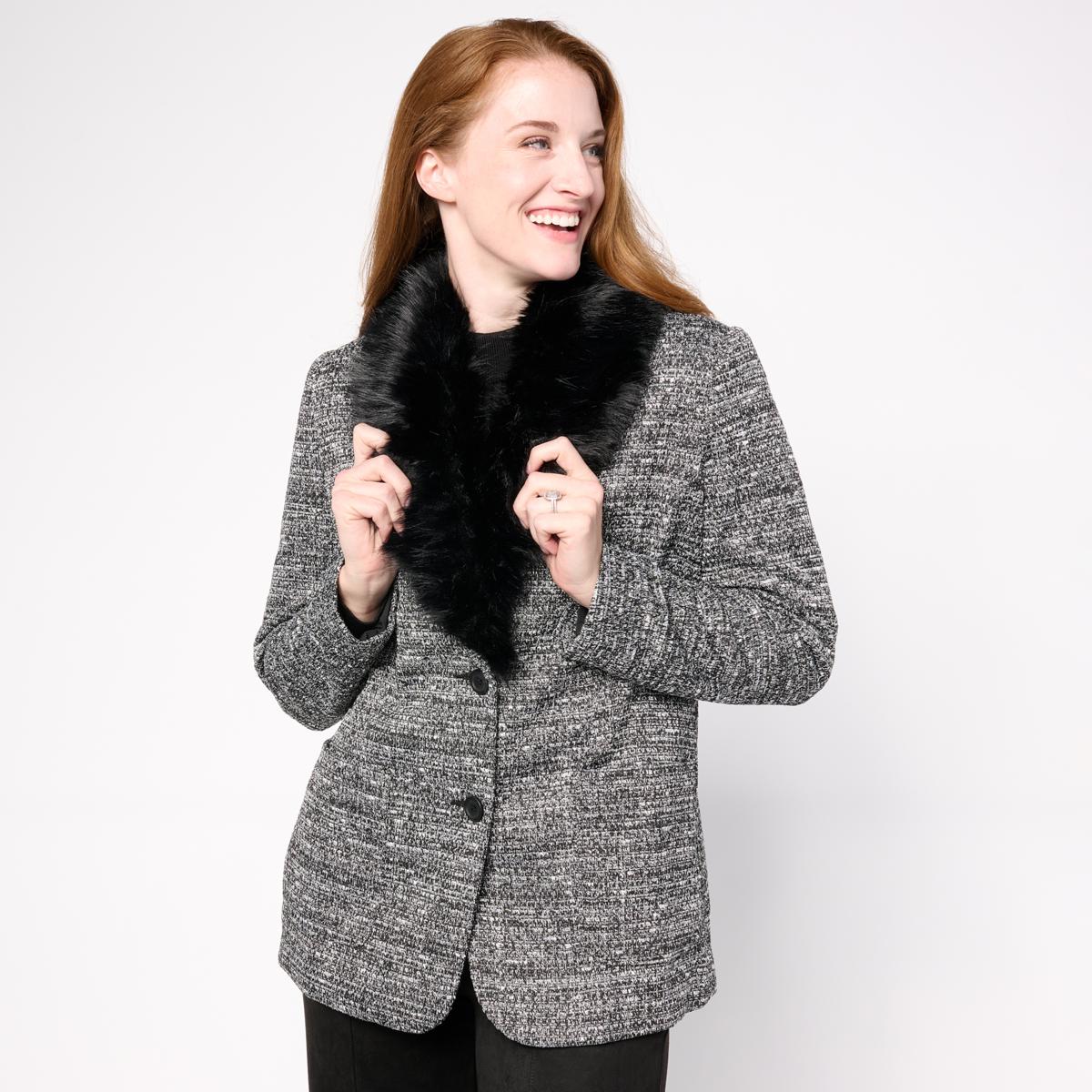 Mark & James by Badgley Mischka Onyx Tweed Knit Blazer with Detachable Faux Fur Collar