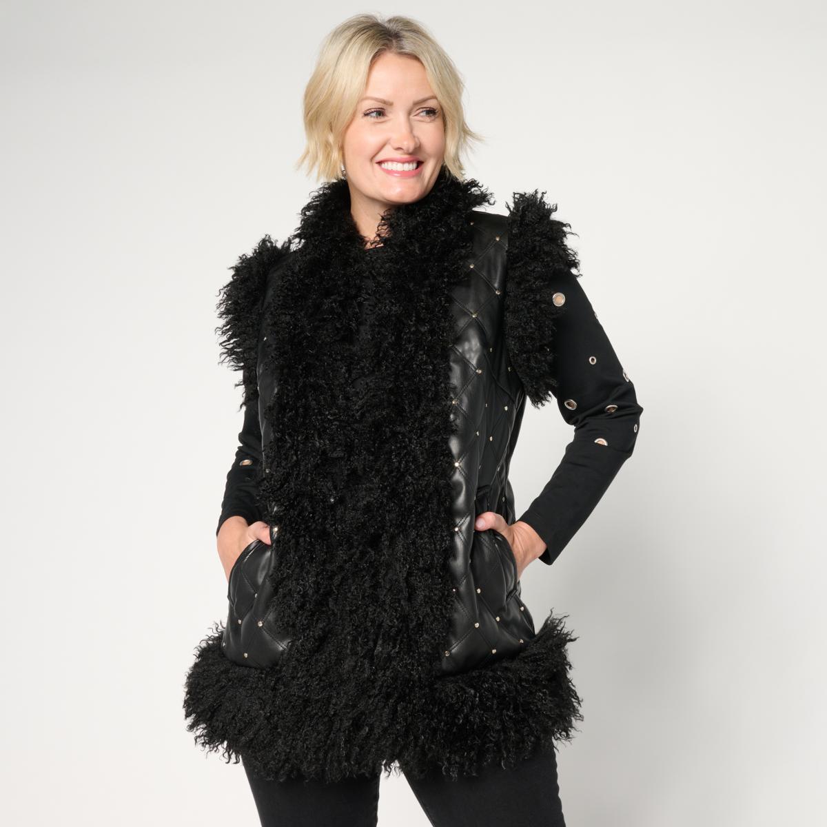 Super plush quilting and faux fur lining makes this faux leather vest feel so warm and cozy. No wonder it's great layered with casual pieces and even your more elevated seasonal looks, too.