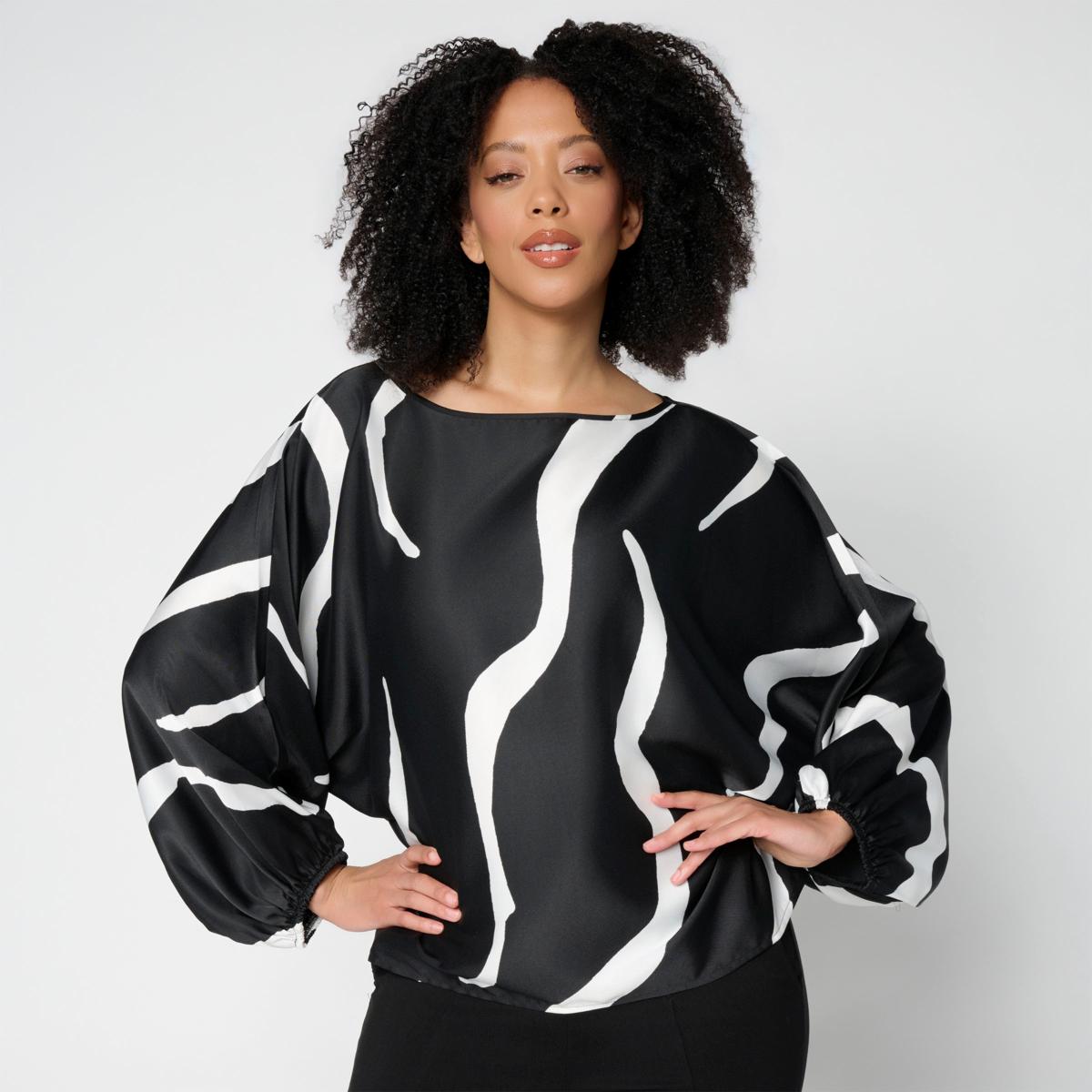 Elevate your wardrobe with this chic hammered satin top featuring long sleeves and elasticated openings for a comfortable fit. Its fluid drape and lustrous finish make it perfect for transitioning from day to night with ease. Pair it with your favorite bottoms for a versatile, effortlessly stylish look.