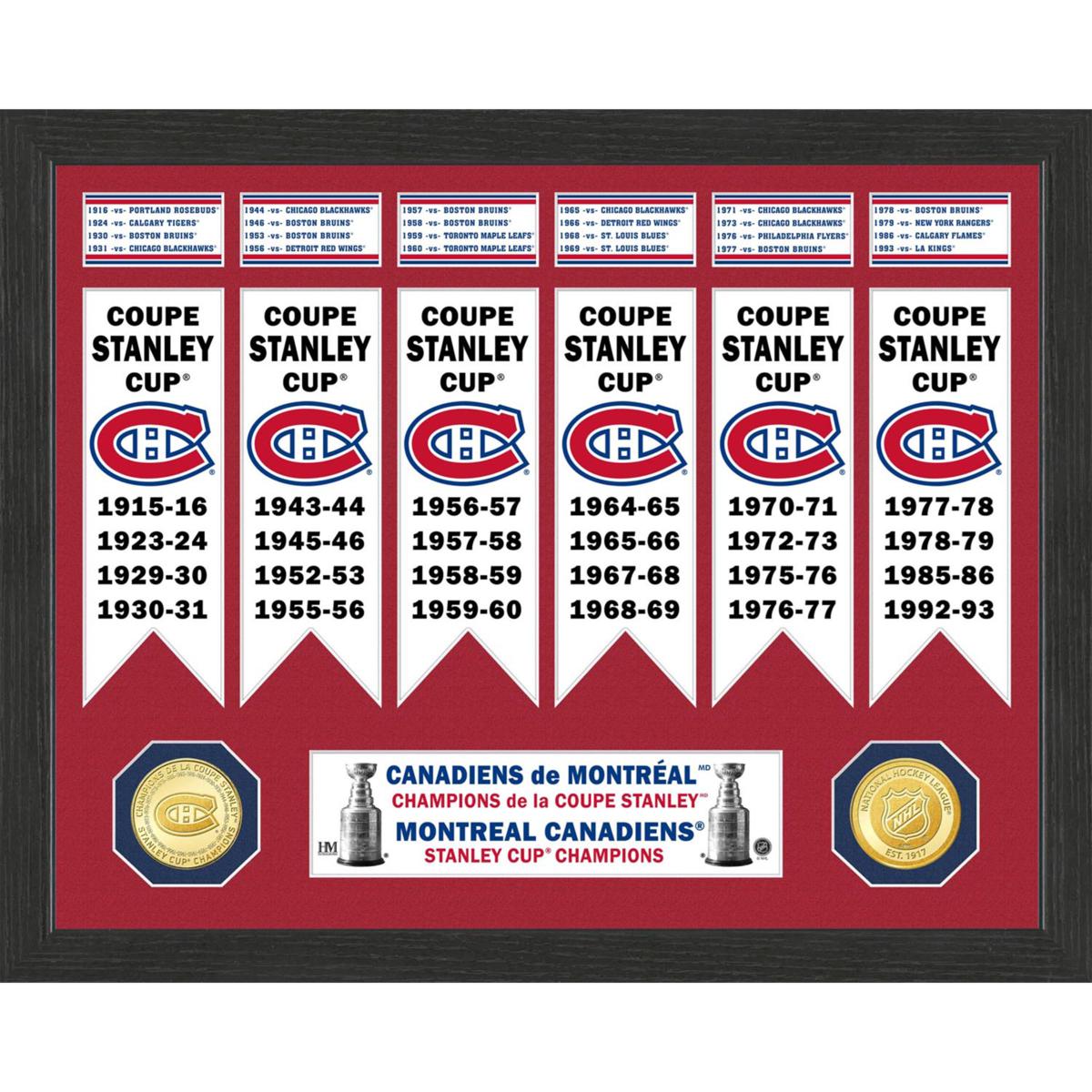 Celebrate the legendary Montreal Canadiens with this beautifully crafted commemorative frame featuring banners for each Stanley Cup championship season. Perfect for any fan, it showcases minted bronze coins alongside detailed fact cards, making it a standout display piece. Whether for your home or office, this officially licensed collectible brings history and pride together in one stunning presentation.