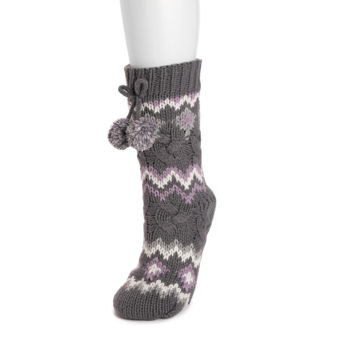 Prepare to kick your cozy game up a notch with Muk Luks Chunky Fairisle/Cabin Mix Cabin Socks. Fully lined with faux sherpa for that extra snuggle factor, these socks are like a warm hug for your feet. With playful pom details, beautiful winter knit designs, and stretchy knit that feels like a dream, you'll be dancing through you home in style. Plus, with multiple color options available you are sure to find the perfect pair!
