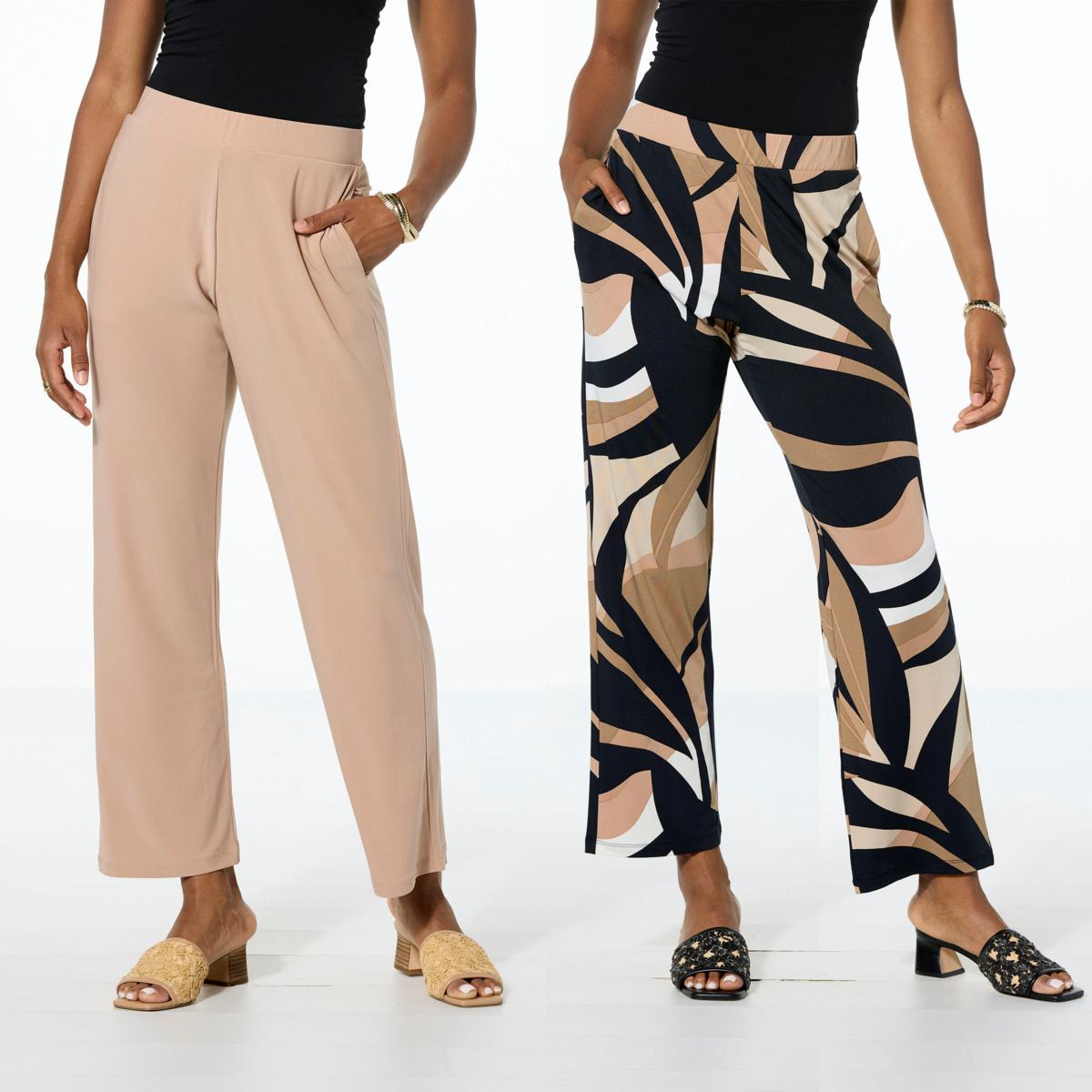 Designed to complement women of all different heights and body types, this versatile 2-pack solid and print pant set makes the perfect wardrobe staple. Paired with your favorite footwear and tops, these garments are sure to become your new go-to.