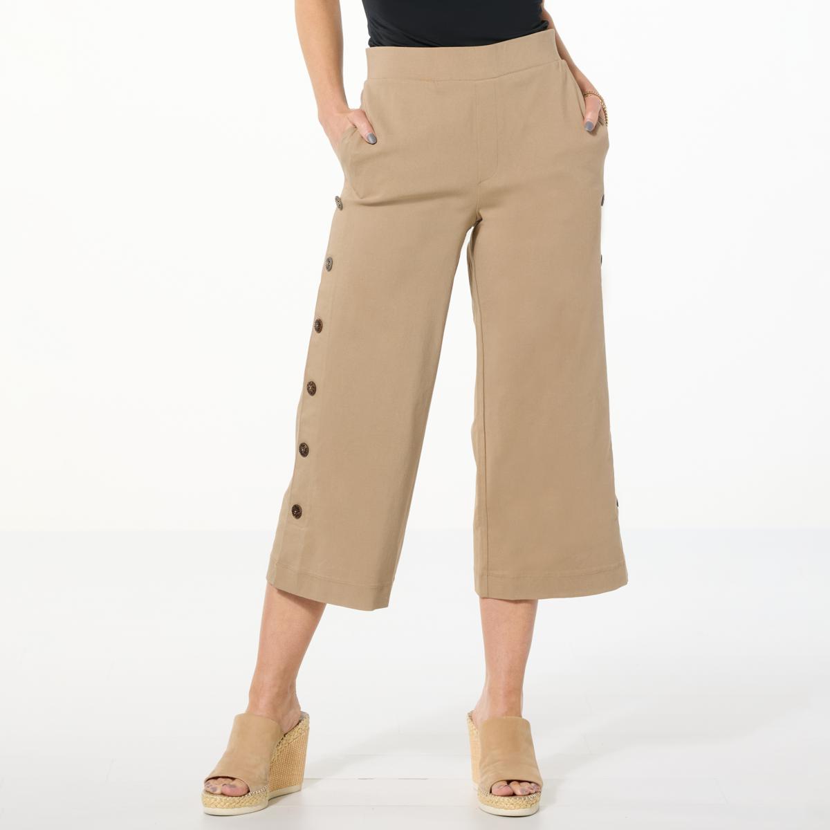 Nina Leonard Culotte Pant with Side Panel Button Detail