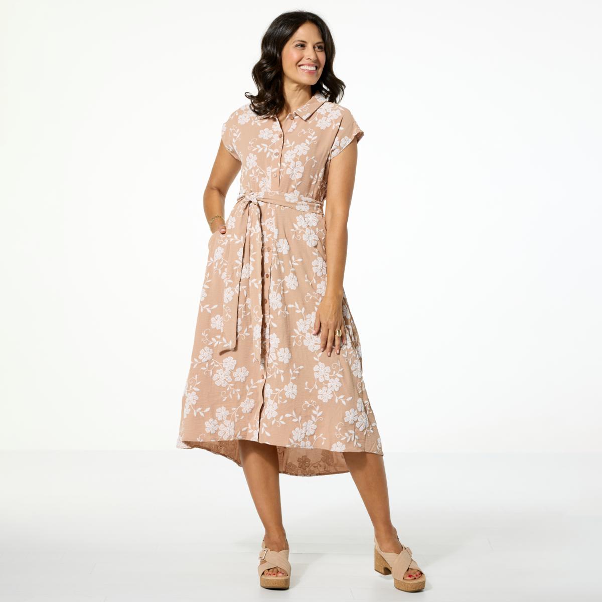 This versatile button-down shirtdress stays the stylish course throughout the seasons, and perfect for any occasion.