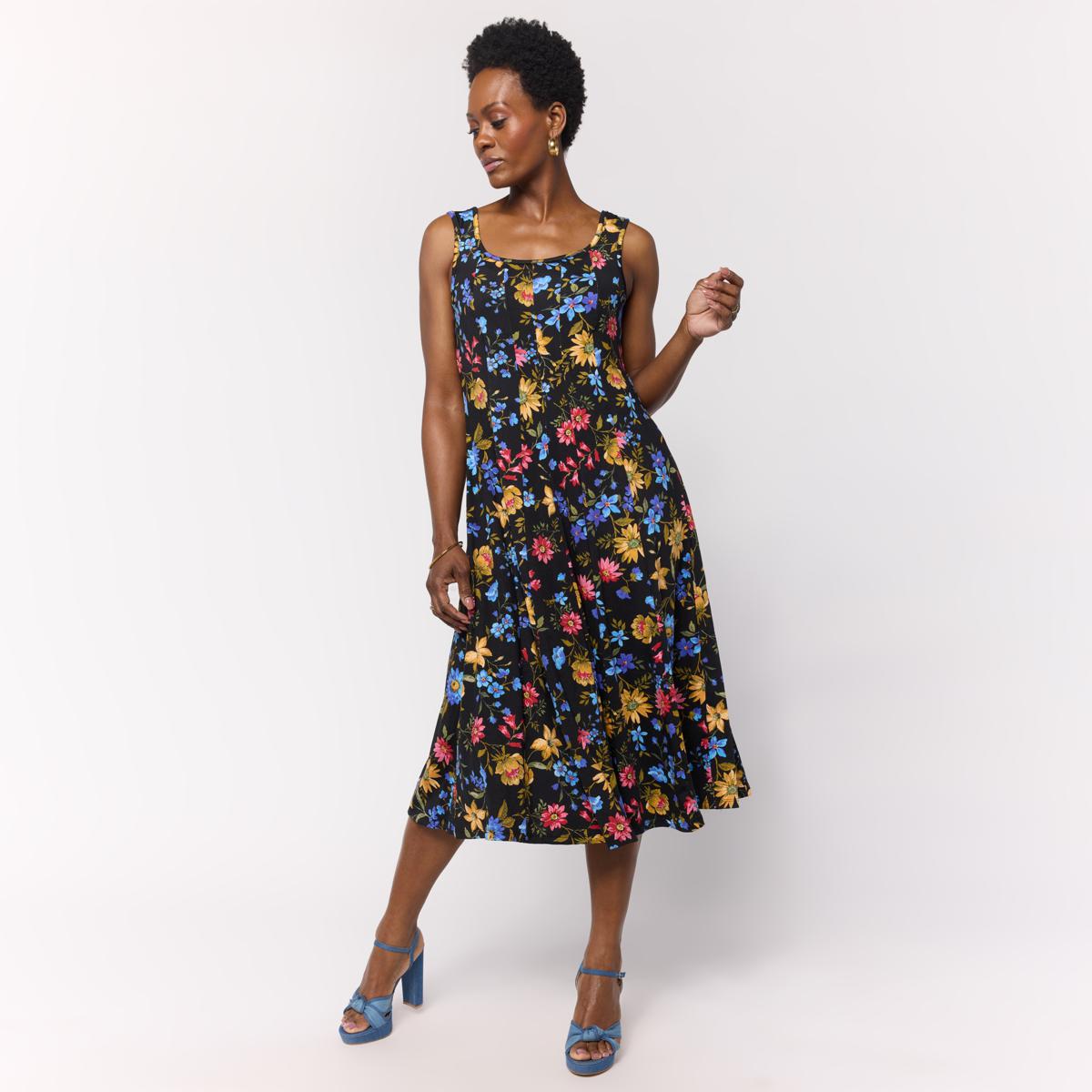Step into effortless style with this sleeveless A-line dress featuring a flattering scoop neckline and vibrant prints. Perfect for warm days or layering with a jacket for cooler evenings, it offers comfort and versatility. Dress it up or down for any occasion with ease and confidence.