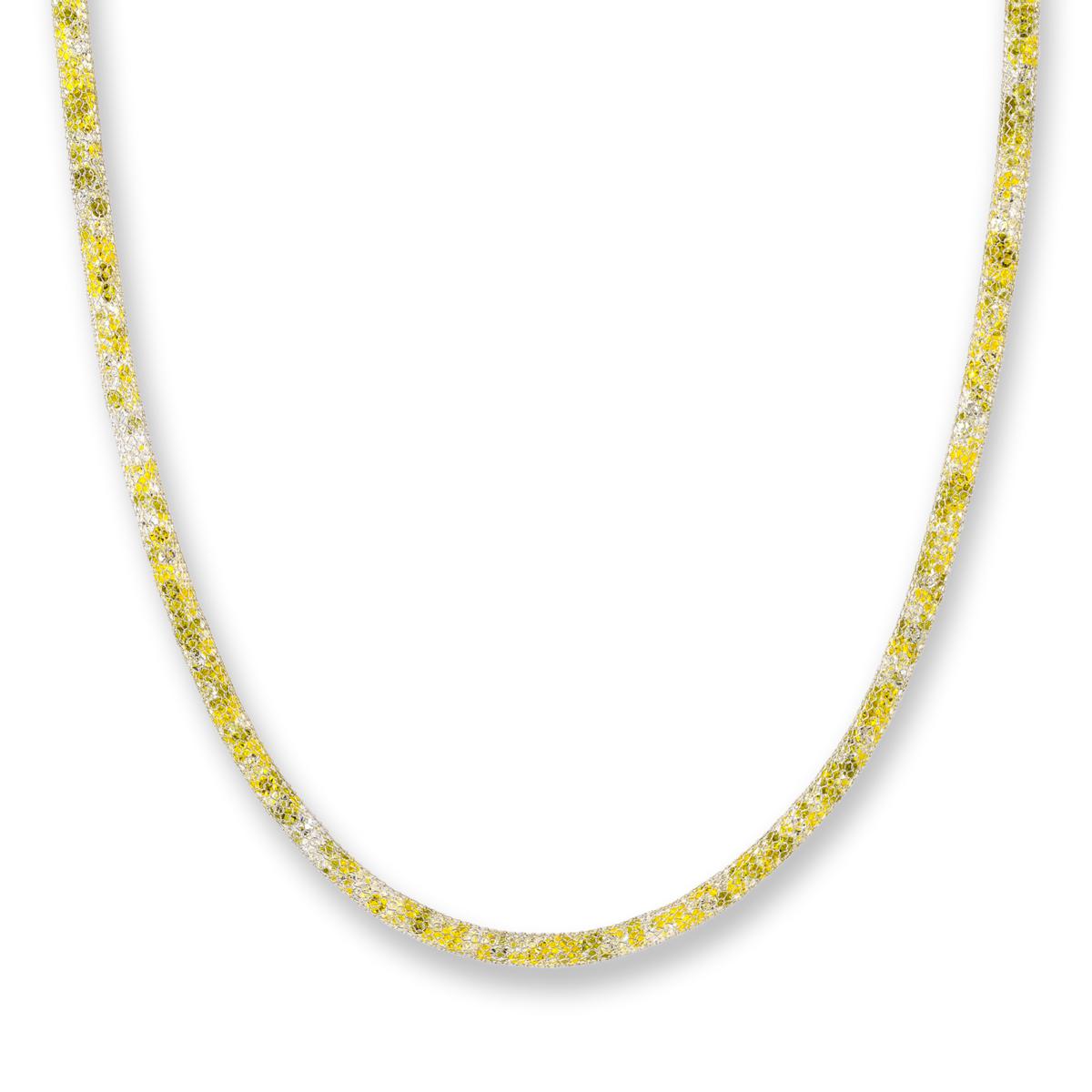 - Mesh tube necklace has multicolored crystals inset and inside for a sparkle effect