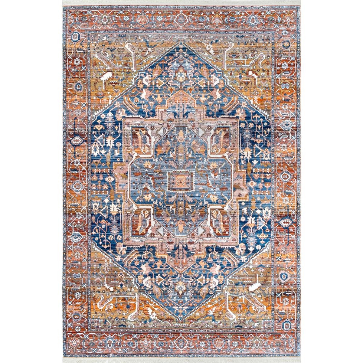Elevate your space with this gorgeous vintage medallion area rug. This floor covering has a traditional look, but with a modern twist with a bold color scheme and fringe lined ends. This rug is made from soft durable fibers that reflect a different sheen from each and every angle and will be a trusted decor piece in any room. Enjoy every space in your home with this pet-friendly and easy to care for area rug.