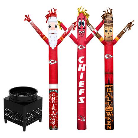 Is your team spirit larger-than-life? Let this Sporticulture NFL inflatable crazy sports fan 3-pack show off your excitement in enthusiast fashion. Complete with interchangeable original NFL Team sleeve, Halloween Scarecrow sleeve, and Holiday Santa sleeve, this cheerful three-pack includes a weather-resistant blower motor and an integrated LED light so he can playfully pop up at parties, tailgates, or (hopefully) playoff week.