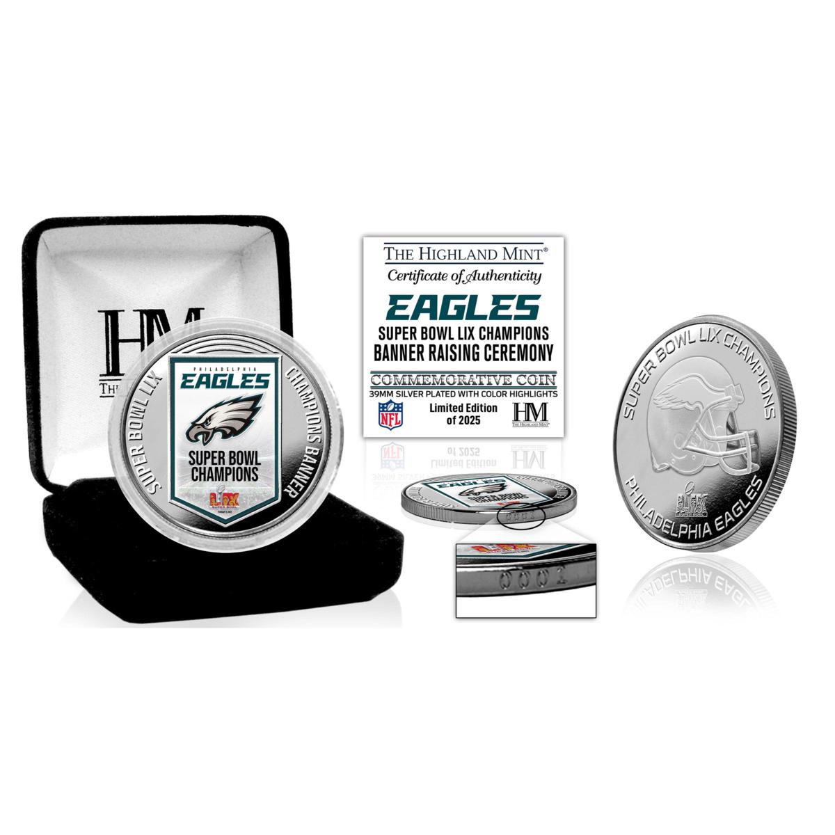 Officially Licensed NFL Eagles SB LIX Championship Banner Silver Coin