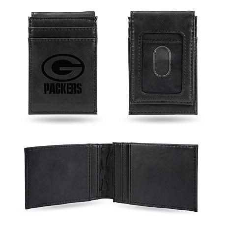 Officially Licensed NFL Engraved Black Front Pocket Wallet - Packers