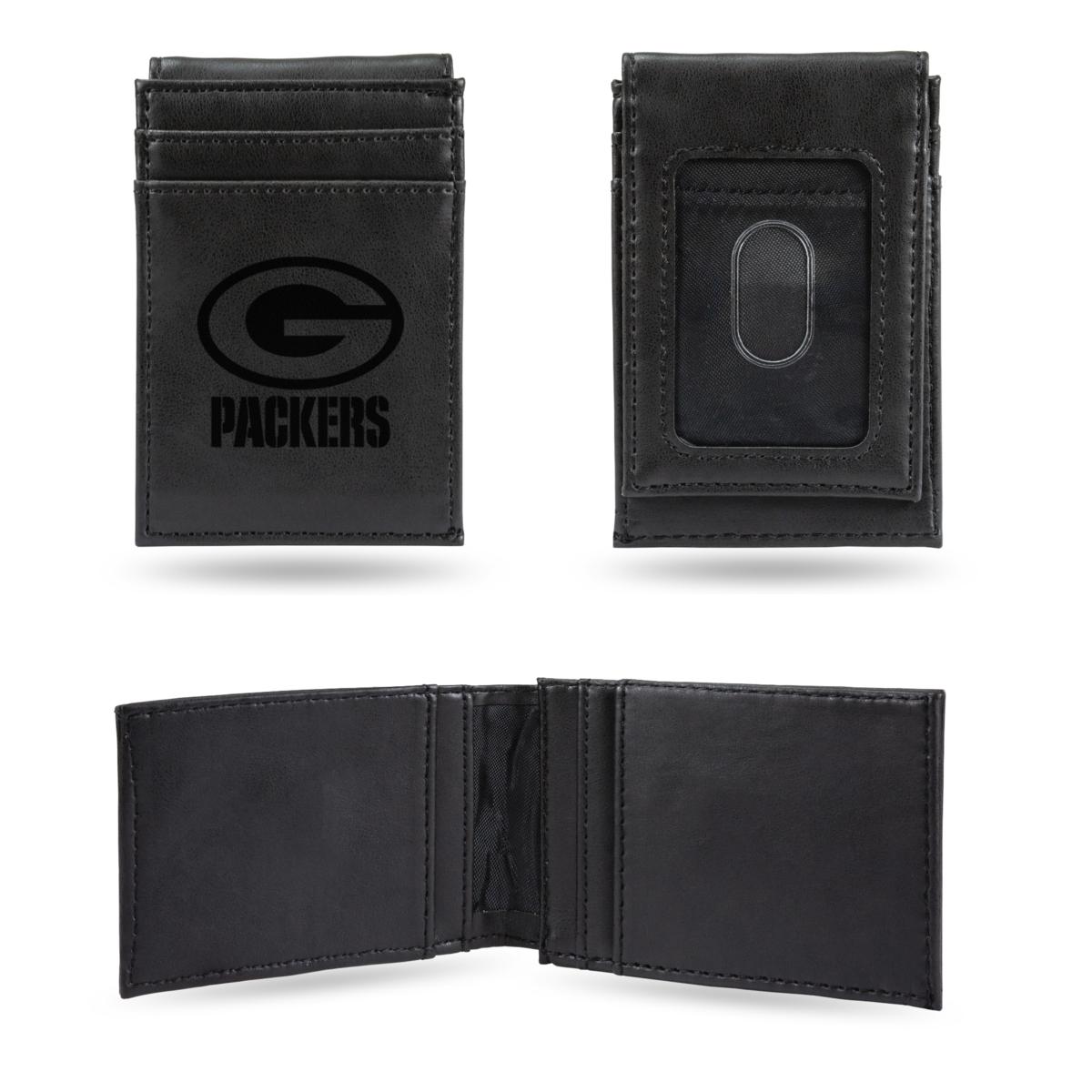 Officially Licensed NFL Laser Engraved Black Front Pocket Wallet - Packers