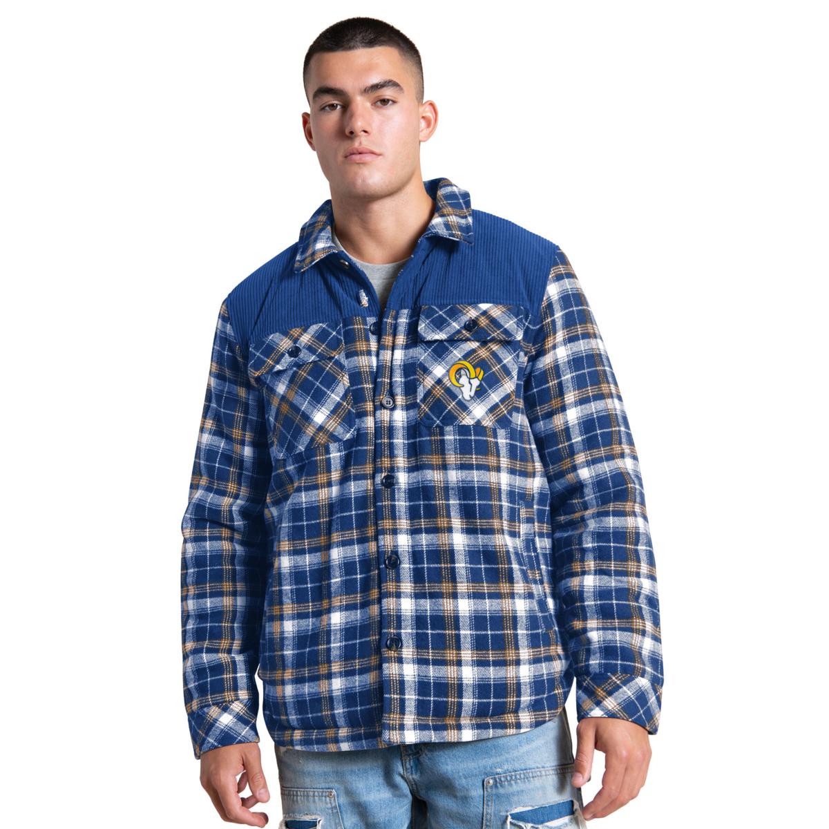 Officially Licensed NFL Men's Transitional Plaid Shirt Jacket by Glll - Rams