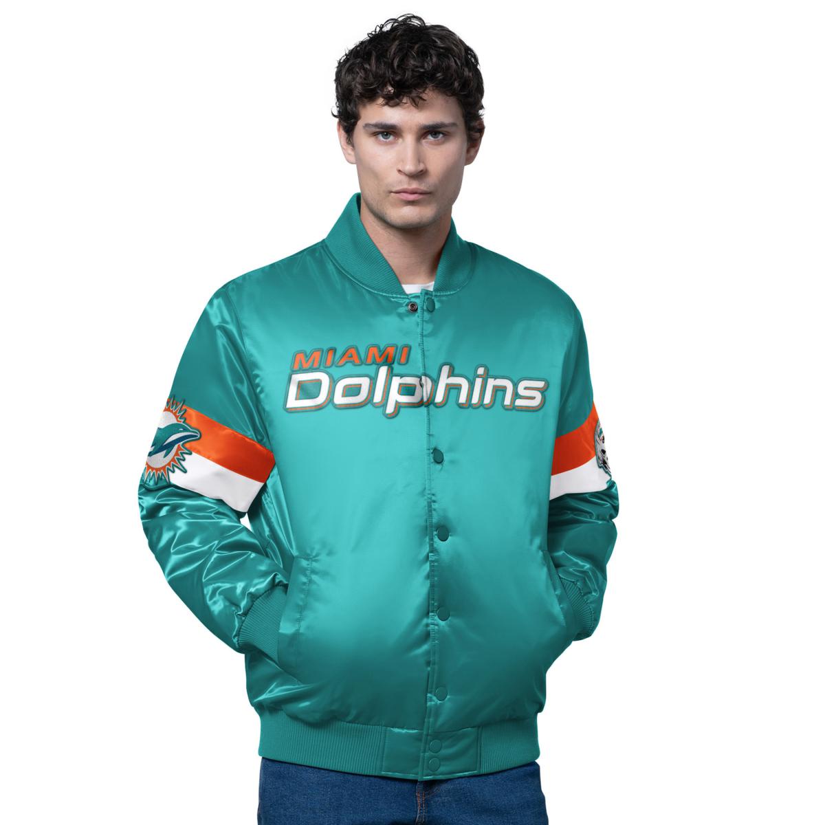 Officially Licensed NFL Starter Unisex Classic Satin Jacket by Glll - Dolphins