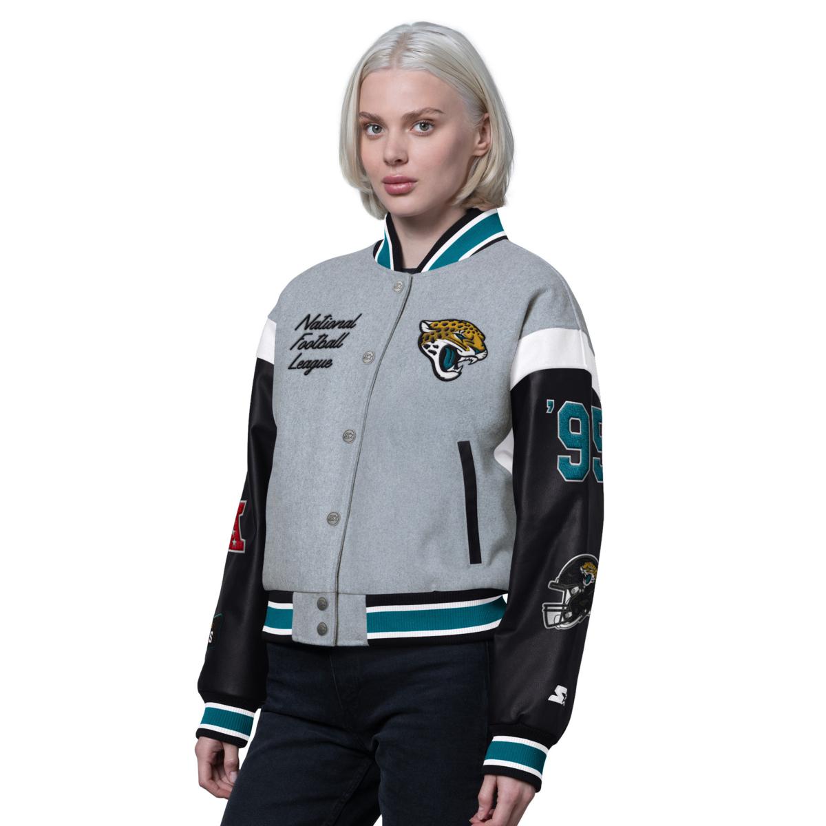 Officially Licensed NFL Starter Women's Cropped Varsity Jacket by Glll - Jaguars