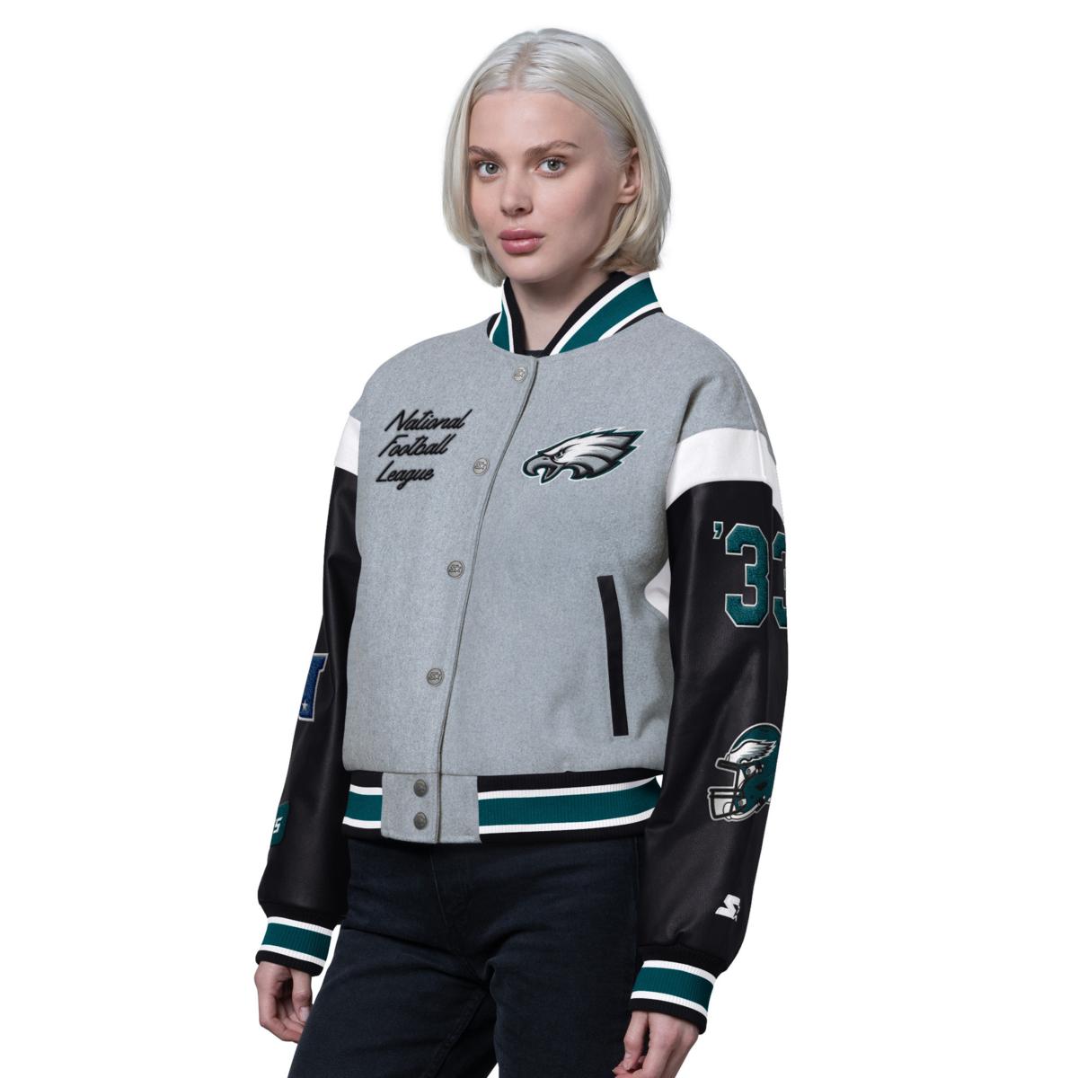 Officially Licensed NFL Starter Women's Cropped Varsity Jacket by Glll - Eagles